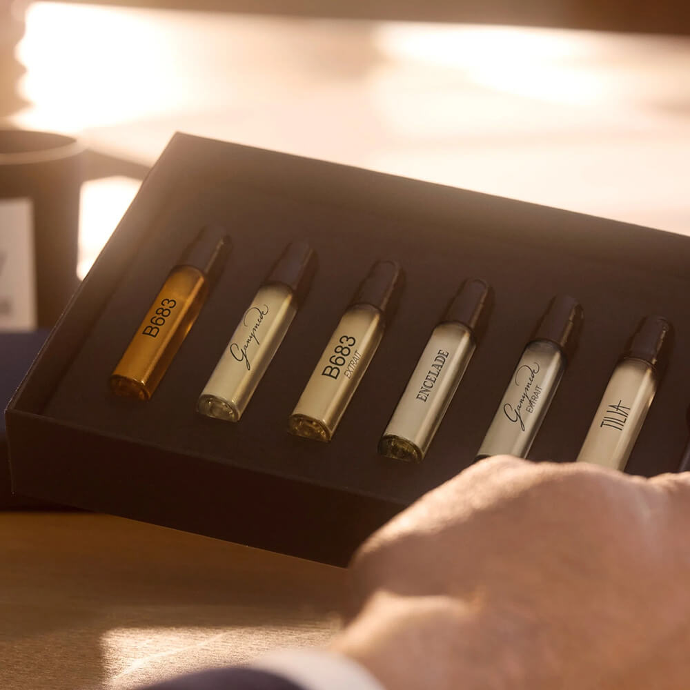 إعادة تفسير جسدية لعطر B683 تمزج بين العود اللاوسي والتفاح الأخضر اللاذع والجلد الداكن في أثر غني وغامر.